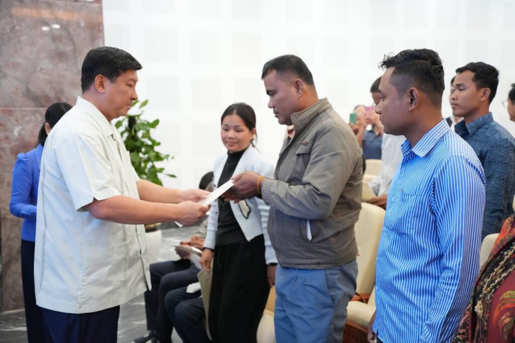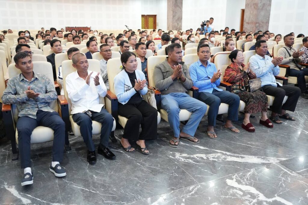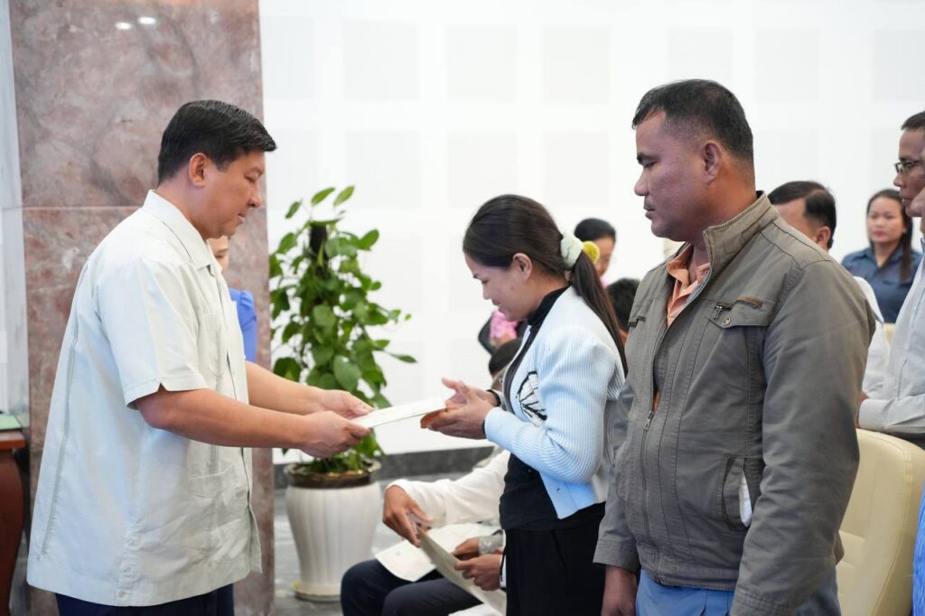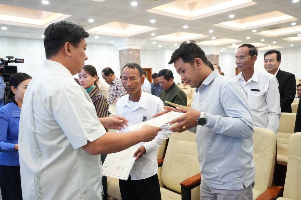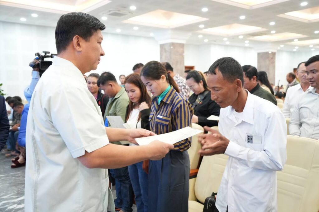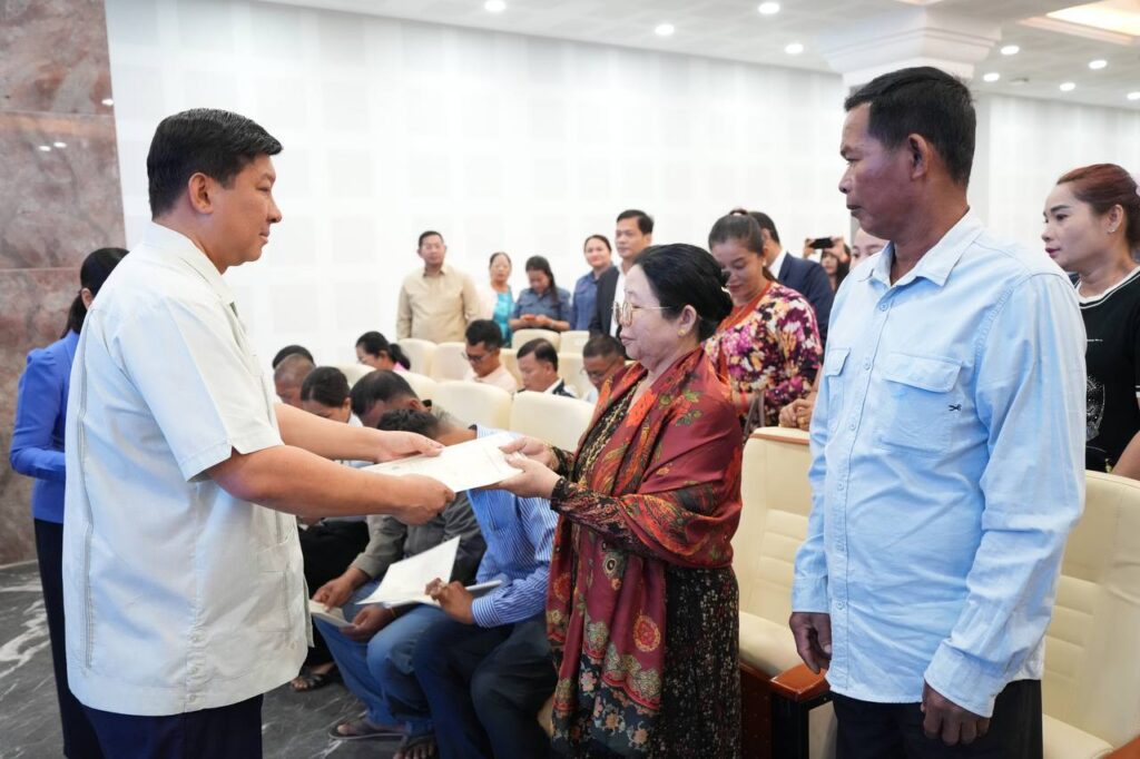 ពិធីប្រគល់វិញ្ញាបនបត្រសម្គាល់ម្ចាស់អចលនវត្ថុជូនប្រជាជនជាអតិថិជន គម្រោងដីឡូត៍ ភូមិមរតក នៅខេត្តស្វាយរៀង នាទីស្តីការក្រសួង។